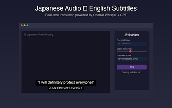 A extensão 'Japanese Audio to English Subtitles' para Chrome permite que os usuários assistam a vídeos e streams japoneses com legendas em inglês em tempo real. Utilizando a tecnologia OpenAI, ela capta o áudio da aba do navegador, transcreve a fala em japonês e traduz instantaneamente para o inglês, proporcionando uma experiência de visualização mais acessível. Os usuários podem arrastar a sobreposição de legendas para qualquer lugar da tela e ajustar o tamanho das fontes entre 16px e 48px, além de visualizar tanto a tradução em inglês quanto o texto original em japonês.